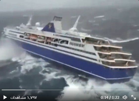 شاهد سفينة سياحية كادت أن تغرق بسبب ارتفاع الأمواج