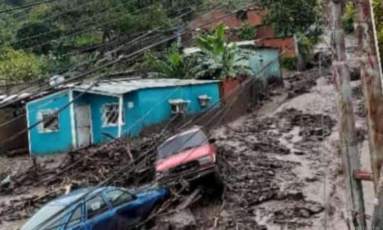 مشاهد لفيضانات قوية وانهيارات أرضية من سفح جبل