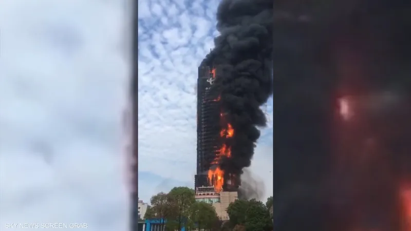 فيديو لحريق مرعب لنار تلتهم ناطحة سحاب