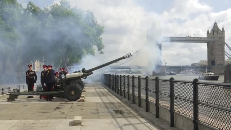 شاهد.. لحظة إطلاق المدفعية 96 طلقة تكريمًا للملكة إليزابيث