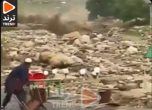 شاهد.. فيضان قوي جارف من أعلى الجبل يفاجئ السياح