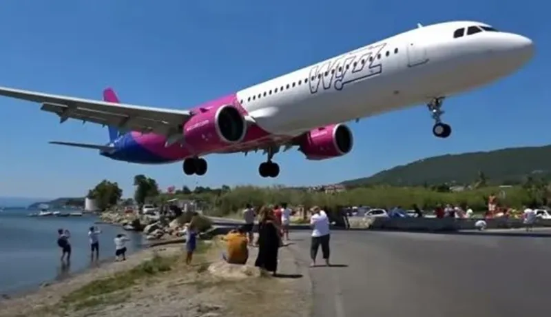 لحظات مثيرة.. شاهد طائرة تهبط فوق رؤوس السياح