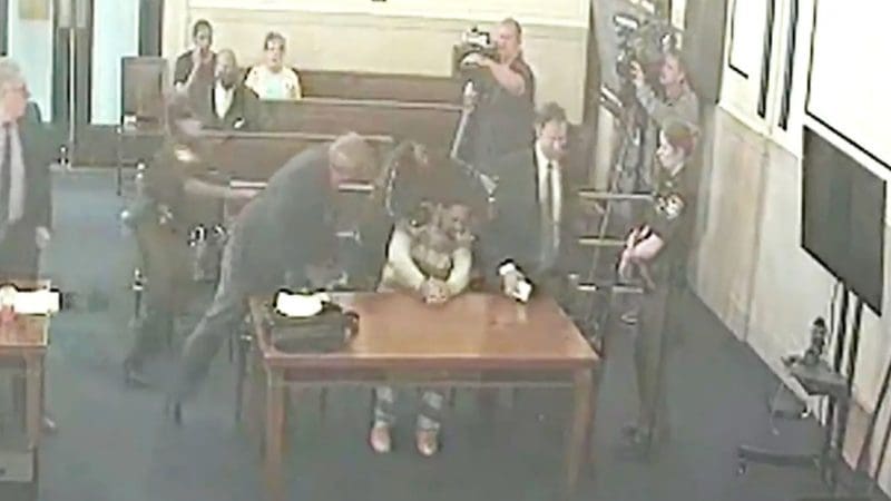 لكمات في المحكمة.. شاهد رجلًا ينهال بالضرب على فاجع طفله