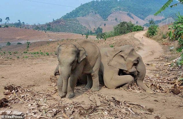 حزنًا على فراقها.. فيل صغير يحرس جثة أمه ويرفض تركها