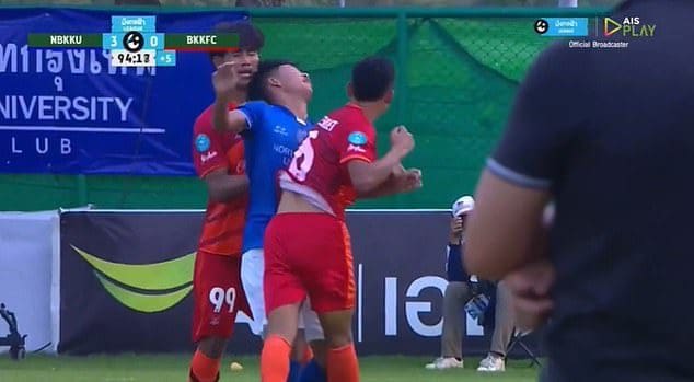 شاهد.. لاعب أوقع الحكم أرضًا بركلة على رأسه