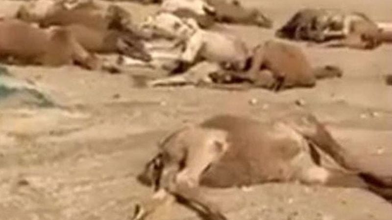 فيديو حزين وصادم.. 43 ناقة جثثًا هامدة في دولة خليجية وسط تحذيرات حول سبب نفوقها