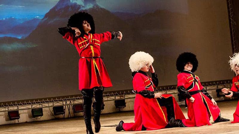 رجل يستعرض إتقانه الرقصات الشعبية القوقازية