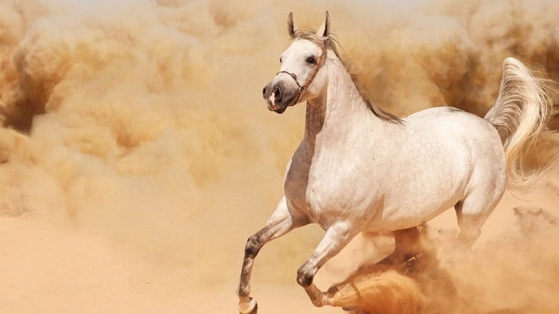 رجل يحاول دخول محل تجاري وهو يمتطي حصانًا