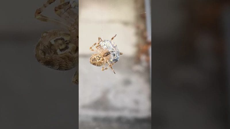 معركة بين عنكوبت ودبور علق في شباكه