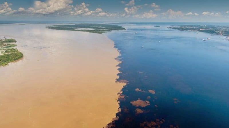 نقطة التقاء نهر الأمازون ذي اللون الطيني مع نهر تاباجوس ذي اللون الأزرق