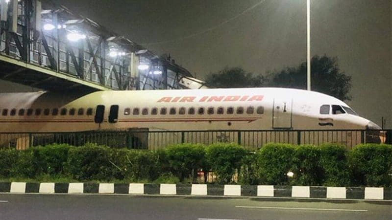 مشهد غريب.. فيديو لطائرة تعلق تحت جسر للمشاة