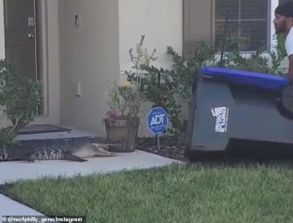 بالفيديو.. رجل يستخدم سلة مهملات لاصطياد تمساح ضخم