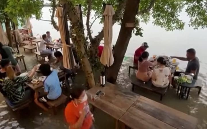 رغم الفيضانات.. مطعم يستمر بتقديم وجباته للزبائن