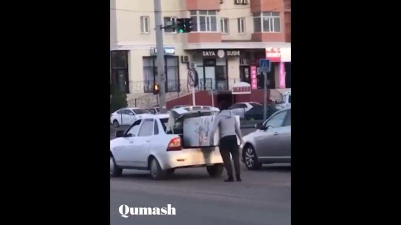 ثلاجة.. يتم نقلها بطريقة مميزة وغير معتادة