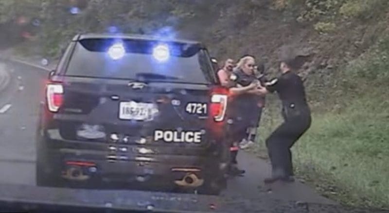 رد فعل سريع.. ينقذ شرطية من سيارة خارجة عن السيطرة