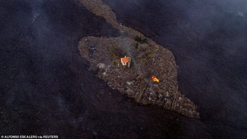 لقطات جوية.. ترصد نهر الحمم البركانية يزحف غامرا كل شيء أمامه