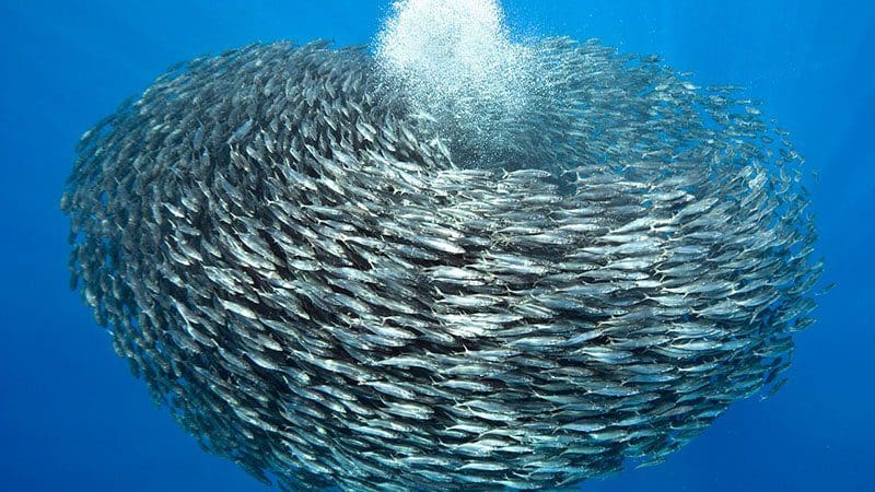 سرب أسماك.. يتشكل على هيئة كرة لإرباك قرش