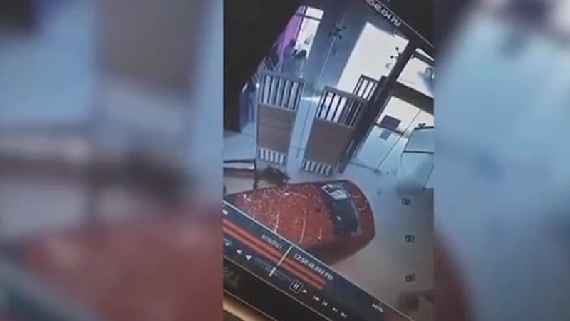 شاهد.. فتاة تقتحم مكتب اتصالات بسيارتها بإحدى الدول الخليجية
