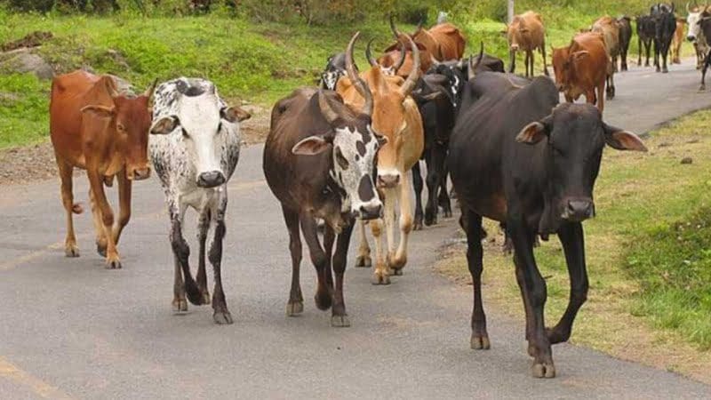 قطيع من الأبقار.. ينتظر فتح إشارة المرور لعبور الطريق