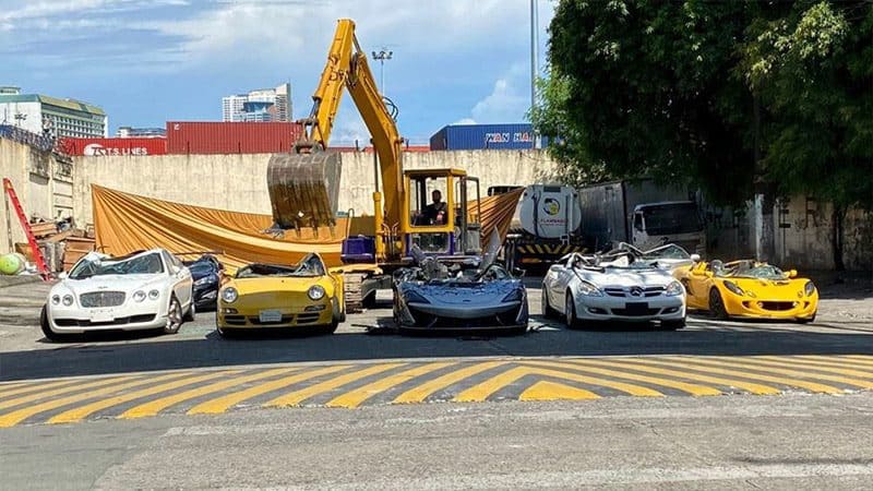 شاهد تدمير سيارات بملايين الدولارات.. مرسيدس وبورش