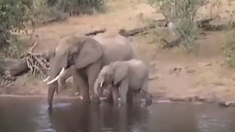 تصرف فيل عندما قضم تمساح خرطومه أثناء شرب المياه