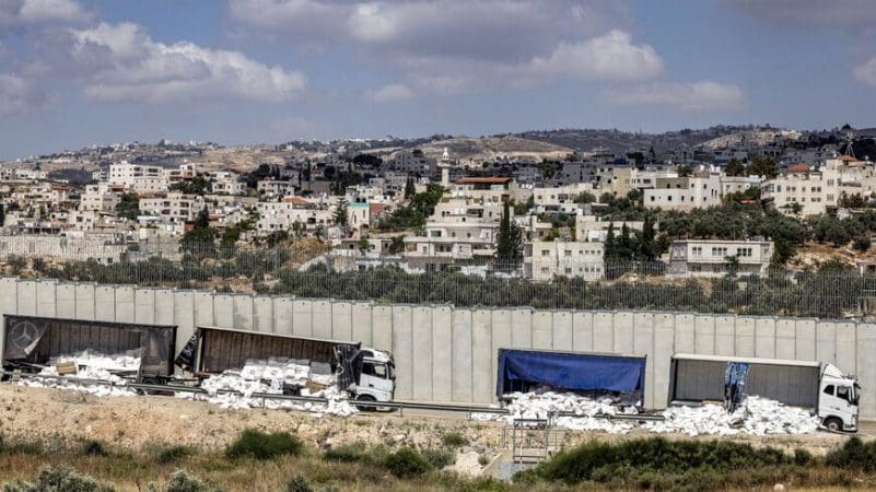 مقاطع توثق رمي المستوطنين مساعدات إنسانية كبيرة من الأردن لغزة