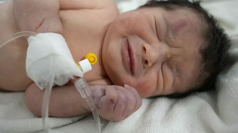 علقت بحبل سرة أمها المتوفاة.. شاهد ماذا حل برضيعة سوريا
