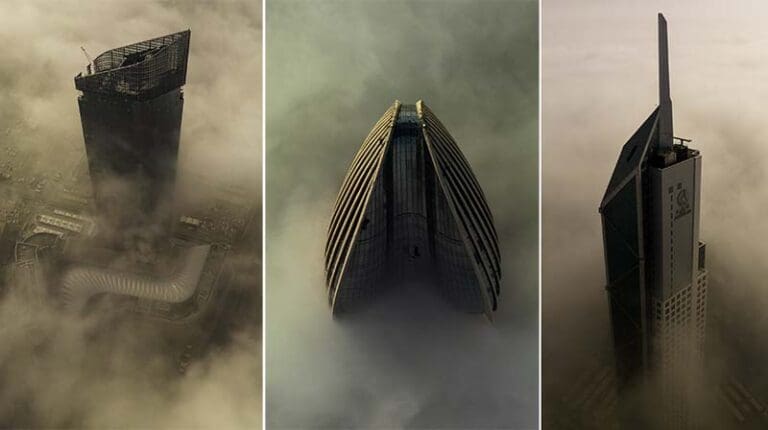 ضباب كثيف يغطي سماء دولة خليجية من الأعلى “صور”