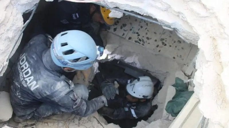 شاهد انتشال رضيعة حية من تحت أنقاض مبنى منهار في دولة عربية