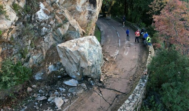 منظر جوي يظهر صخرة من الجرف الذي سقط على إحدى الطرق "صورة تعبيرية"