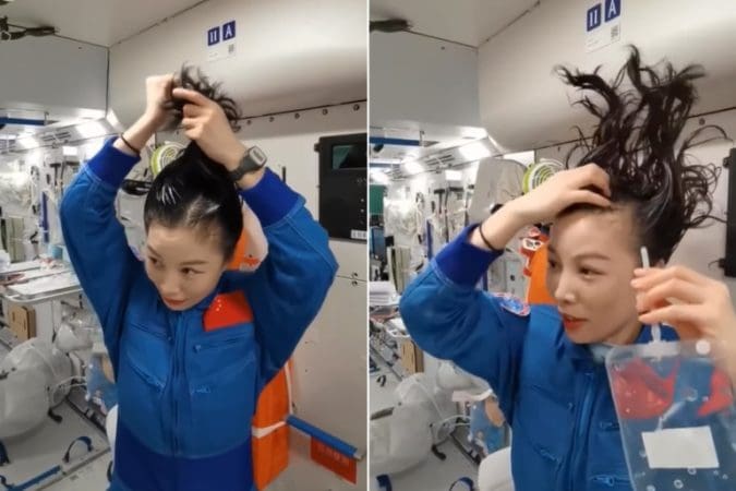 رائدة الفضاء الصينية وانغ يابينغ تهتم بزينتها رغم الإعاقة بسبب انعدام الجاذبية الأرضية (مواقع التواصل)