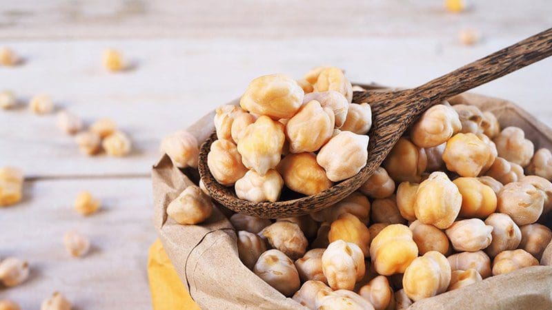 ويوجد 19 غراما من البروتين في كل 100 غرام من الحمص، كما أنه غني بفيتامينات مثل “بي 6”.