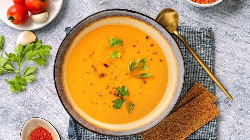شوربة العدس خيار ممتاز، إذ إنها تزود الجسم بالبروتين، وأيضا الماء. اطبخها بشكل صحي، بدون ملح أو بكمية قليلة منه للغاية.