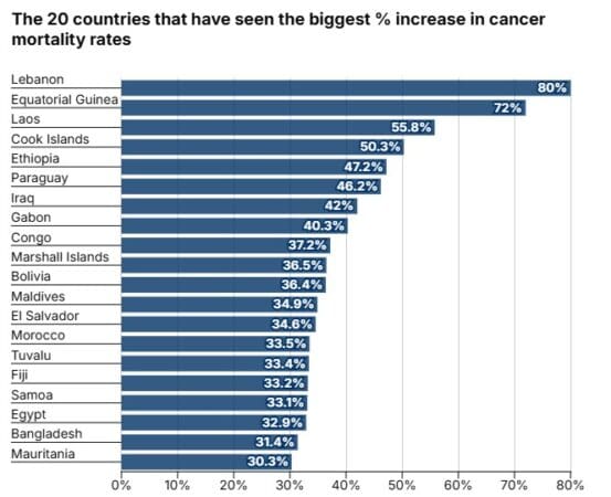 ومن دون إجراءات وتمويلات كافيين، قد يرتفع عدد الإصابات الجديدة بالسرطان بنسبة تقارب 61% عالميا خلال السنوات الـ25 المقبلة، ليصل إلى 30.5 مليون حالة عام 2050، كما يُتوقّع ارتفاع عدد الوفيات السنوية بنسبة تقارب 75% ليبلغ 18.5 مليونا.