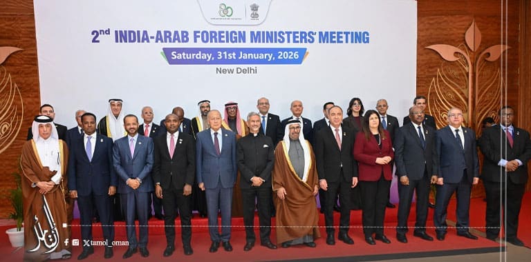 وأشار معاليه إلى الأهمية الاستراتيجية التي توليها سلطنة عُمان لعلاقات التعاون العربي–الهندي، مؤكداً دعمها لكافة برامج التعاون في المجالات الحيوية والواعدة، ولا سيما في قطاعات التجارة والاستثمار، بما يسهم في تنويع الشراكات الاقتصادية وفتح آفاق أوسع أمام القطاع الخاص، إلى جانب التعاون في مجالات الصحة والصناعات الدوائية وحماية البيئة، ومواجهة التحديات العابرة للحدود، بما في ذلك مكافحة الإرهاب والتطرف وخطاب الكراهية.