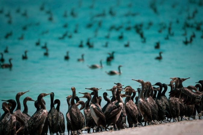 واستطاع المصور العماني علي حربي أن يرصد المشهد المهيب لأعداد لا حصر لها من أسراب طيور “الغاق السقطري” المهاجر لشاطئ “بصه” في ولاية خصب بسلطنة عُمان.