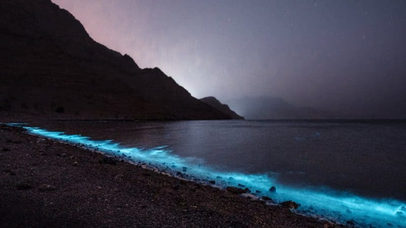 وسبق أن رأى الشحي هذه الظاهرة، التي تُسمى بالبحر المضيء، وفقا لما ذكره الحساب الرسمي لـ”اكتشف عُمان” في تغريدة على “تويتر”، في المنطقة ذاتها، والتي تقع في ولاية خصب بمحافظة مسندم، ولكنه لم يتمكن من توثيقها إلا هذه المرة في سواحل سلطنة عُمان.