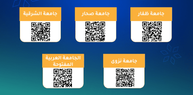 فعلى المواطنين الراغبين في الالتحاق بالبرنامج المذكور والمستوفين للشروط التالية التقدم بطلباتهم باستخدام (رمز الاستجابة السريع) الموضح أدناه قرين كل مؤسسة جامعية.