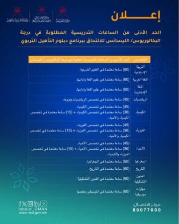 4. أن تكون شهادة البكالوريوس الصادرة من خارج سلطنة عمان معادلة ومصدقة من وزارة التعليم العالي والبحث العلمي والابتكار.