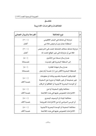 - القوانين والأنظمة عند الإبحار في البحر الإقليمي لسلطنة عمان وفي أثناء الرسو في الموانئ والأرصفة والمراسي البحرية العمانية.