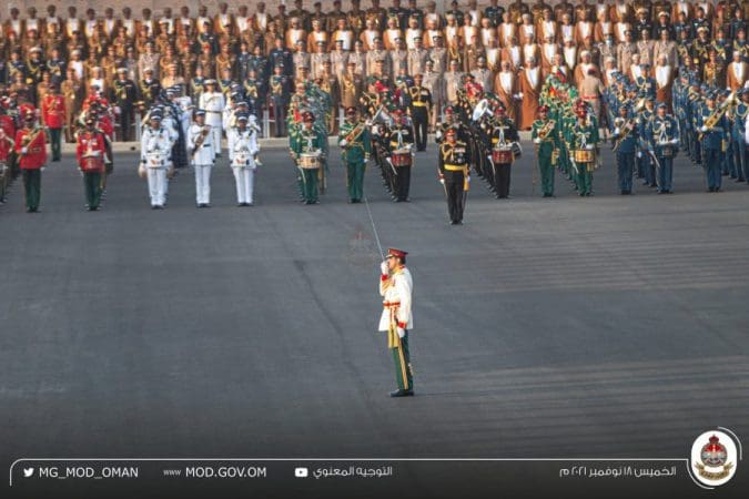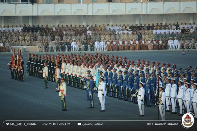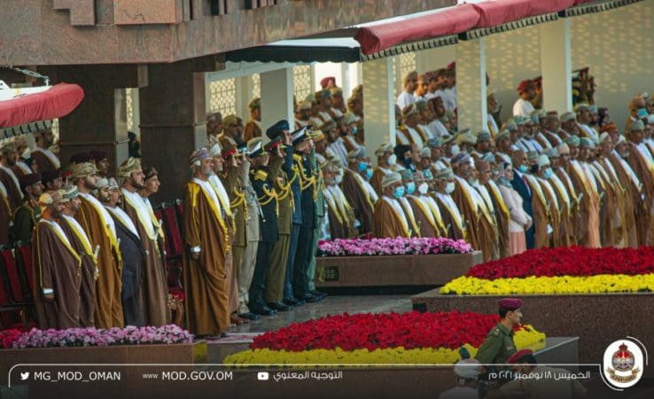 تفضل حضرة صاحب الجلالة السلطان هيثم بن طارق المعظم القائد الأعلى – حفظه الله ورعاه – فشمل برعايته السامية الكريمة عصر اليوم العرض العسكري الذي أُقيم على ميدان الاستعراض العسكري بمعسكر المرتفعة وذلك بمناسبة الاحتفال بالعيد الوطني الحادي والخمسين المجيد.