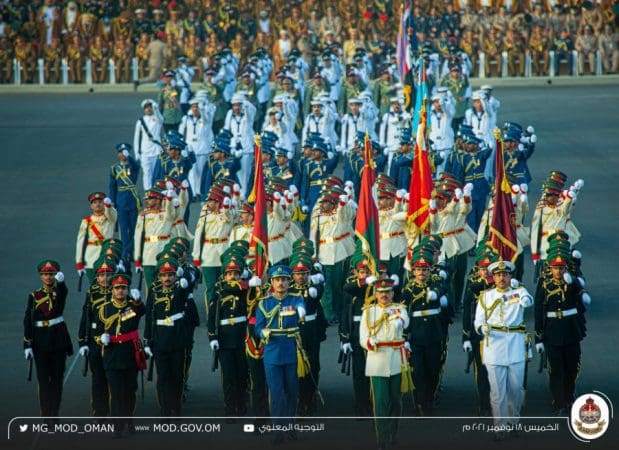 والذي شاركت فيه وحدات رمزية تمثّل الجيش السلطاني العُماني، وسلاح الجو السلطاني العُماني، والبحرية السلطانية العُمانية، والحرس السلطاني العُماني، وقوة السلطان الخاصة، وشرطة عُمان السلطانية، وشؤون البلاط السلطاني، والخيالة السلطانية وخيالة الحرس السلطاني العُماني والفرقة الموسيقية العسكرية المشتركة.