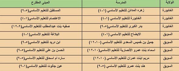 وهذه أسماء المدارس التي تم تعليق استمرار الدراسة فيها بولايتي السويق والخابورة:-