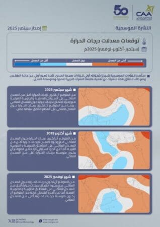 أصدرت الأرصاد العمانية التوقعات الموسمية للشهر الحالي والأشهر القادمة (سبتمبر-أكتوبر-نوفمبر) 2025م، متوقعة تباينًا في كميات الأمطار مقارنة بالمعدل المناخي المعتاد.