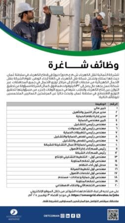 أعلنت الشركة العُمانية لنقل الكهرباء عن عدد من الوظائف الشاغرة.