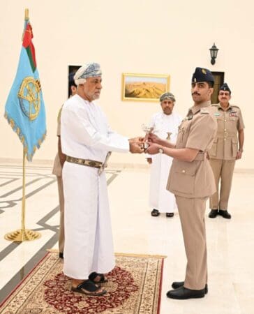 كما سلَّم سموّه الملازم طيار سالم بن إبراهيم الحمراشدي كأس جلالة السُّلطان للطيران لتحقيقه المركز الأول على المستوى العام لدورة الطيران.