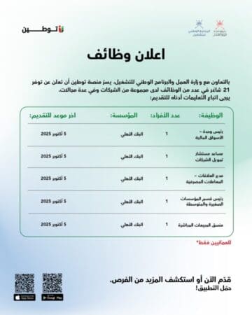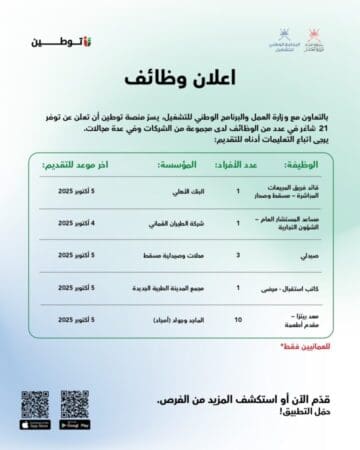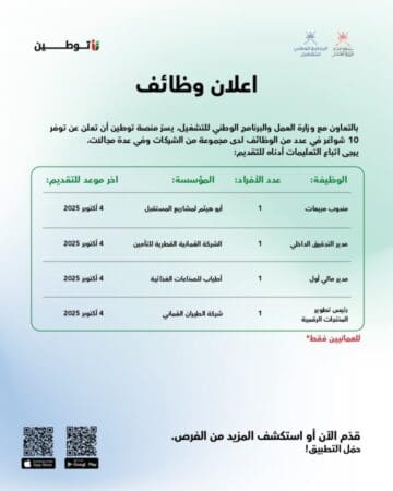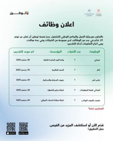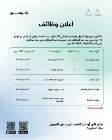 تفاصيل أكثر من 600 وظيفة شاغرة عبر منصة “توطين”