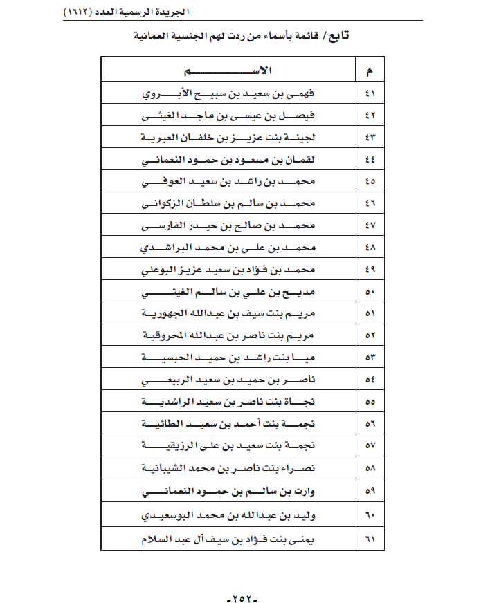 جلالة السلطان المعظم يصدر مرسومًا برد الجنسية العمانية