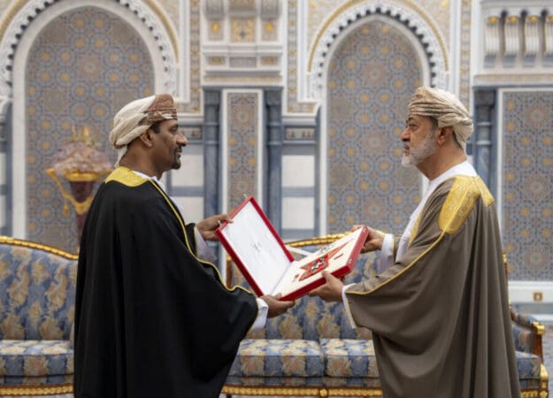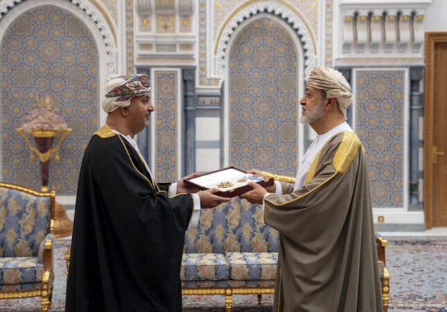 جلالةُ السُّلطان المعظّم /حفظهُ اللهُ ورعاهُ/ يتفضّلُ فيمنحُ أوسمةً سُلطانيّةً بقصر البركة العامر لعددٍ من أصحاب السُّموّ والمعالي والسّعادةِ وقادة قوّات السُّلطان المسلّحة وشُرطة عُمان السُّلطانية وكبار الضّباط من الأجهزة العسكريّة والأمنيّة؛ تقديرًا من لدن عاهل البلاد