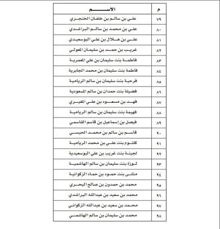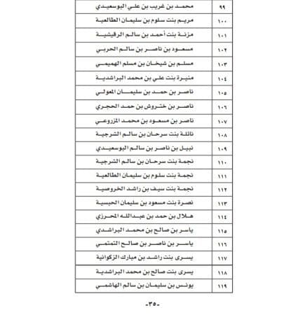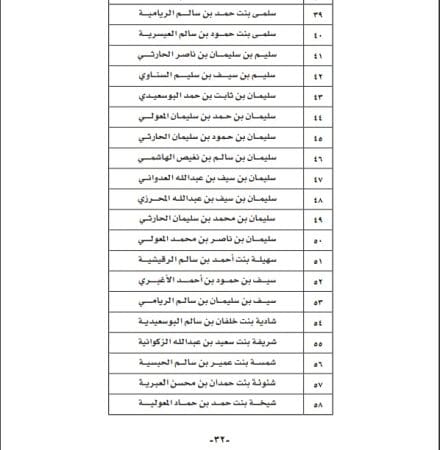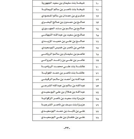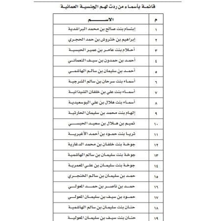 تمنح الجنسية العمانية لكل من الواردة أسماؤهم في القائمة المرفقة.